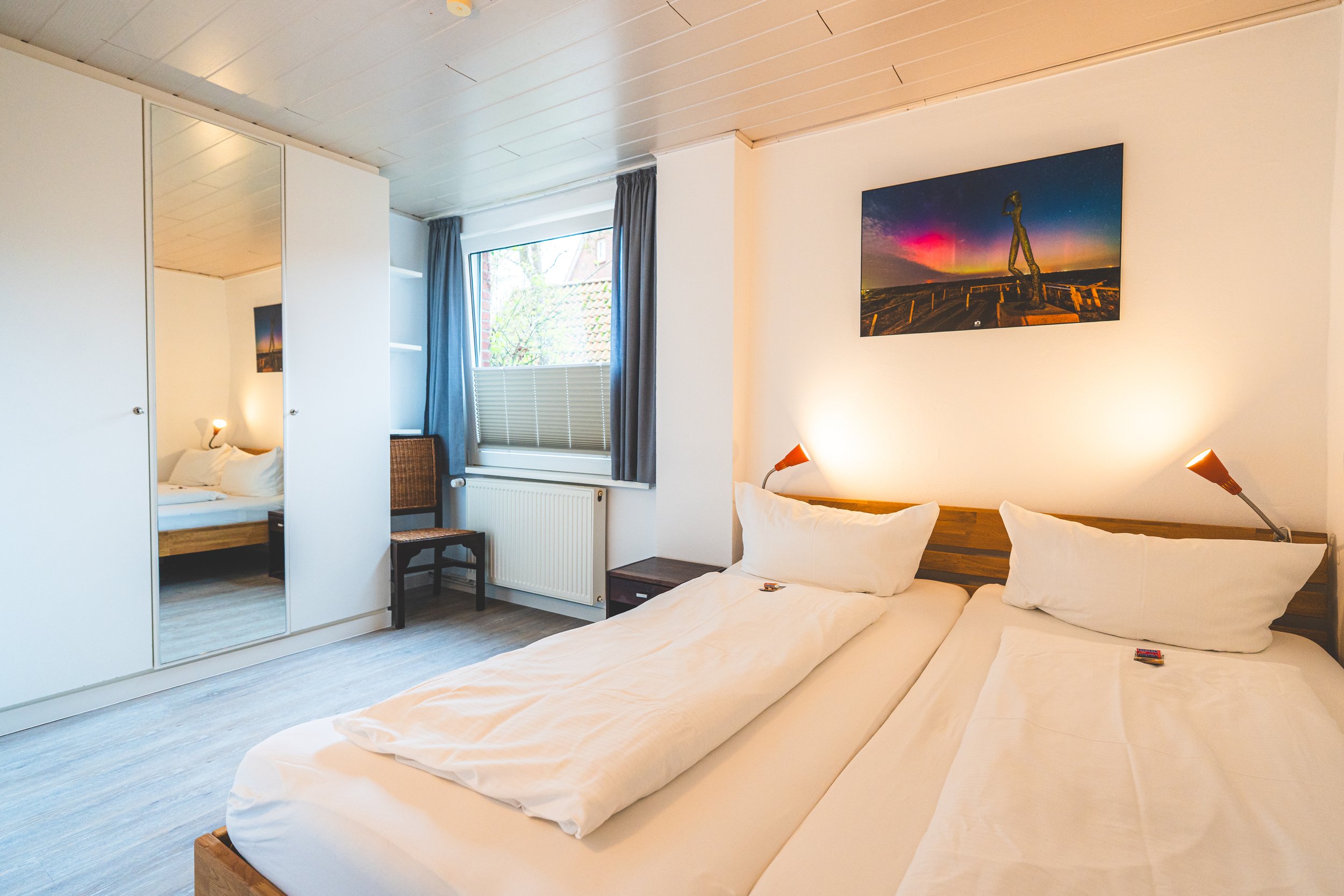 Für zwei Personen besteht die Möglichkeit, nur den oberen Bereich der Wohnung mit einem Schlafzimmer zu nutzen. In diesem Fall wird die Ferienwohnung zu einem günstigeren Preis angeboten.