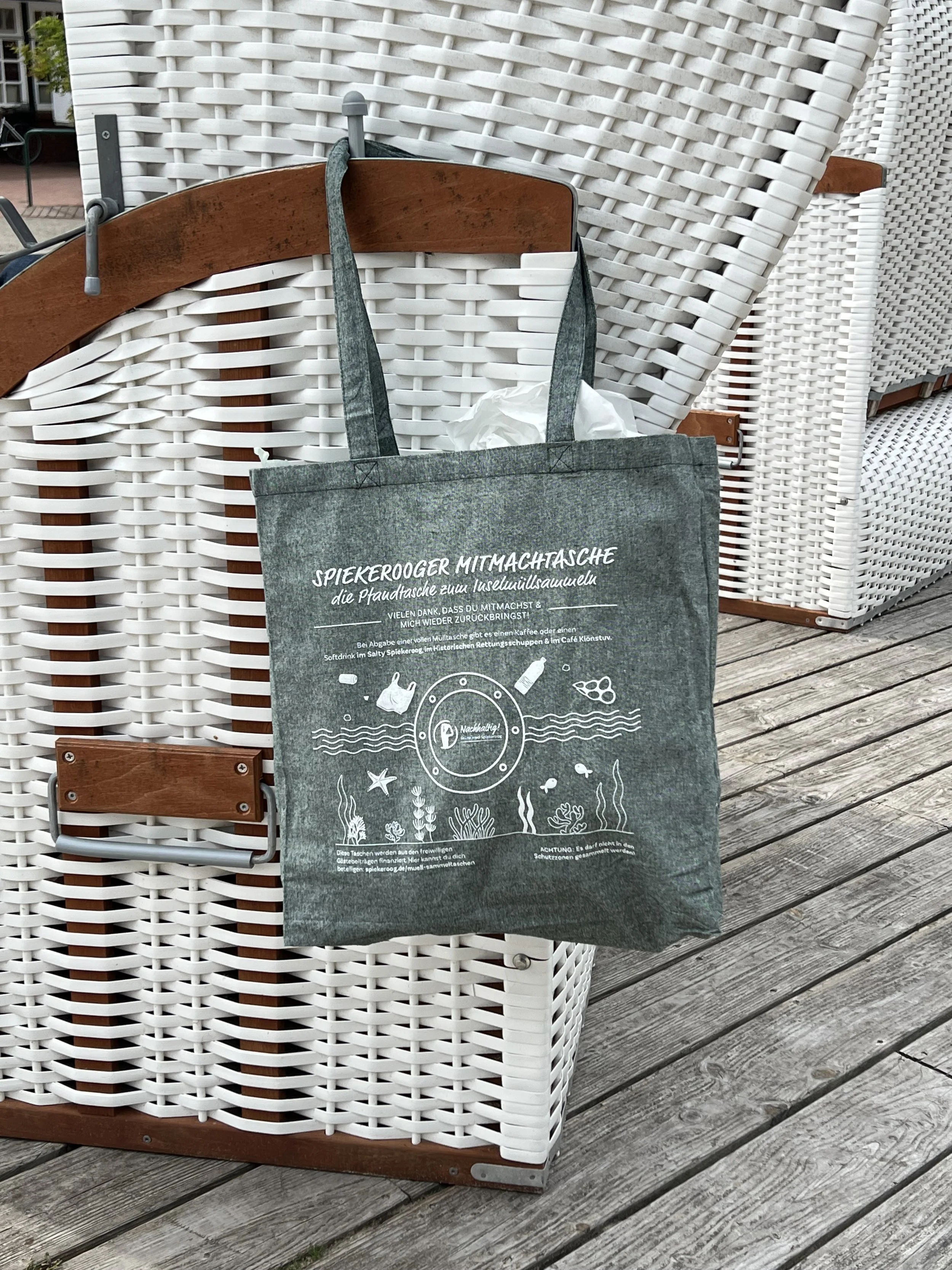 Mit der Tasche können Gäste während ihres Spaziergangs Müll sammeln, der zum Beispiel am Strand angespült wurde oder auf Wegen liegt.